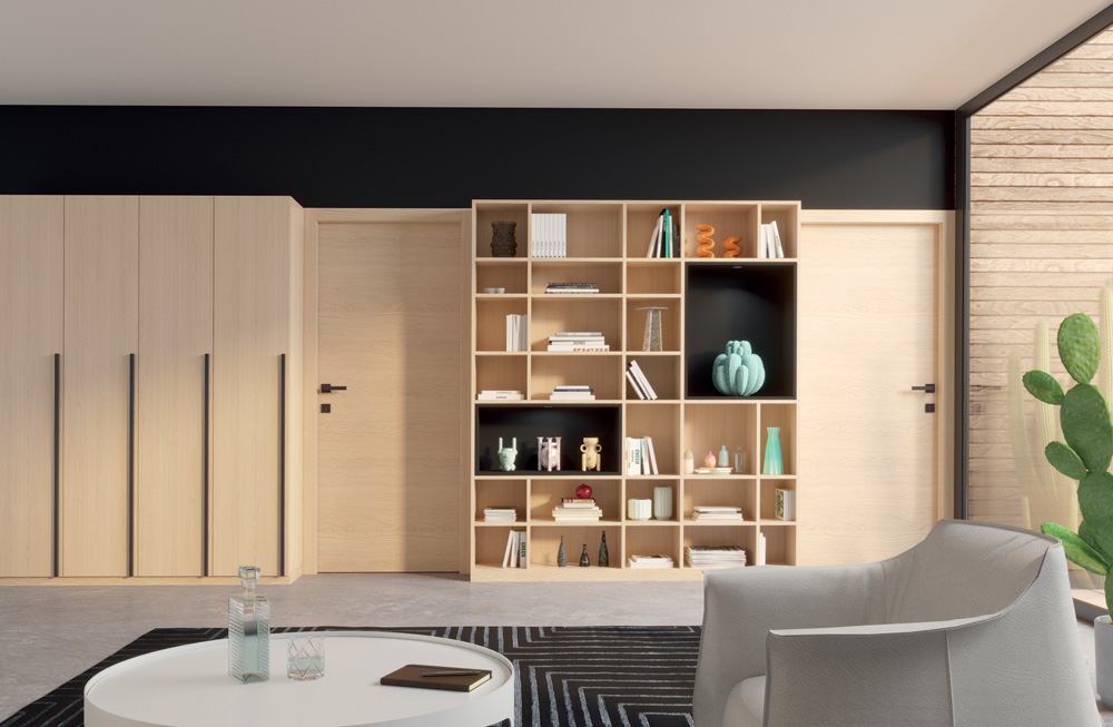 avec bibliothèque et portes intérieures assorties rangement